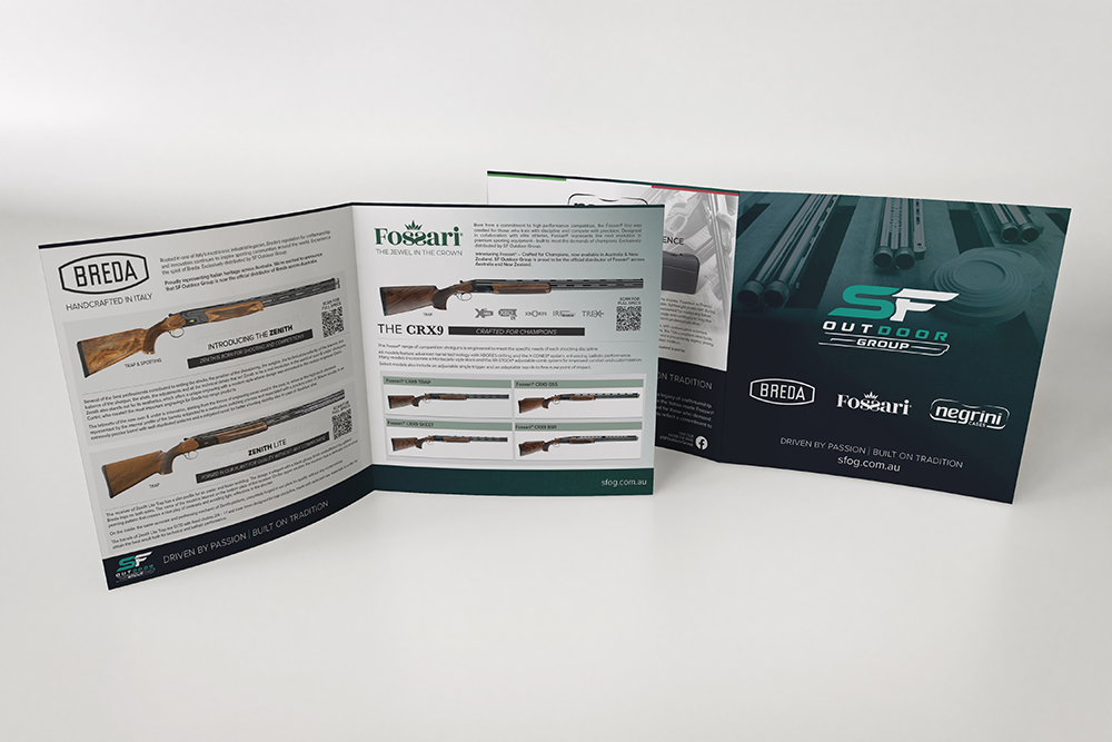 Once design and print were finalised, the result was a polished, premium brochure that successfully introduced SF Outdoor Group to the market. The client was extremely happy with the outcome, and we’re proud to have delivered a piece that reflects the quality and positioning of the brand.