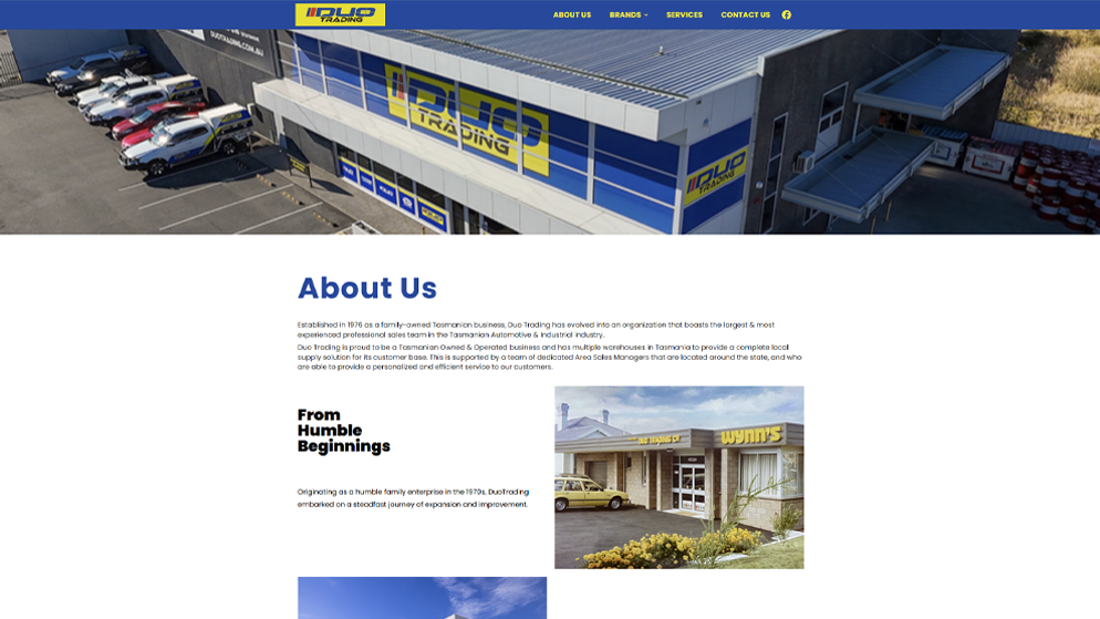We stayed true to the colour palette and brand voice Duo Trading has built over the years, working with their existing copy and making updates where needed to ensure the story reflected who they are today. The aim was to tighten the structure, improve usability, and present a more accurate, up-to-date version of the brand.